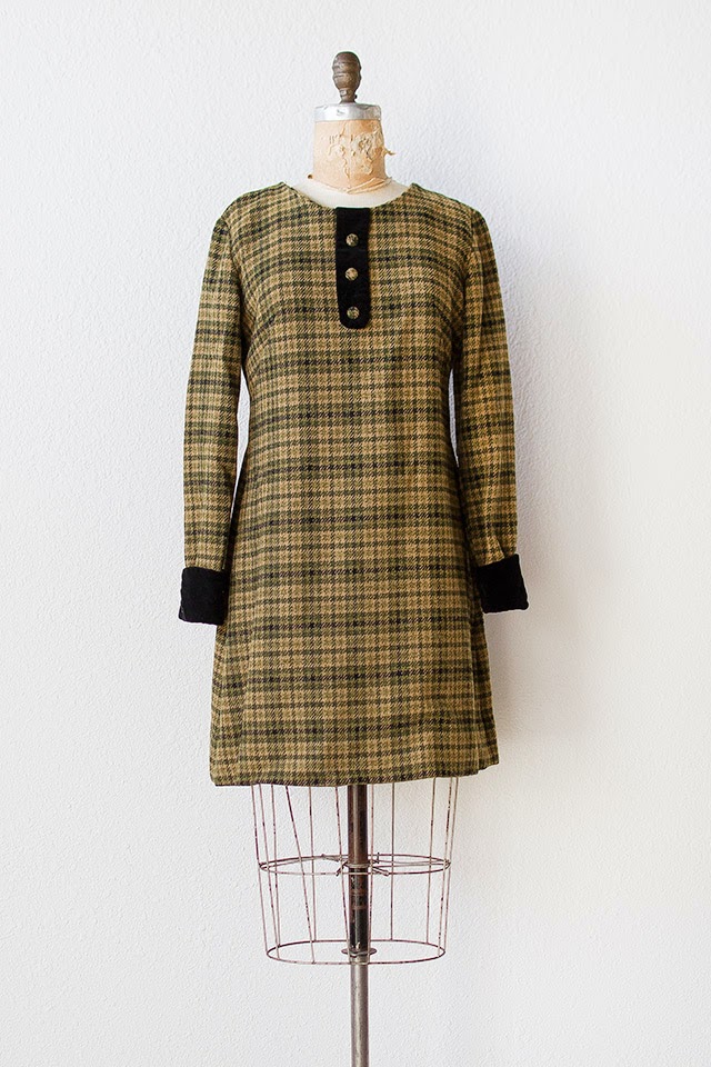 vintage 1960s olive green plaid wool mod dress | Scholars on the Green